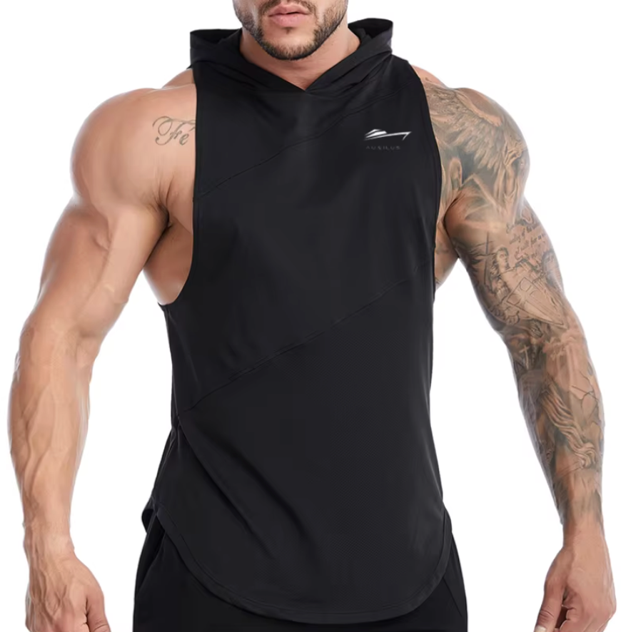 Engineered for performance and street-ready style, the Auxxilus Hooded Stringer Tank Top delivers a bold silhouette with uncompromising comfort. Designed with a lightweight, breathable fabric, this piece keeps you cool through intense training sessions while offering unrestricted movement. The deep-cut stringer fit enhances your physique, while the attached hood adds a distinctive edge that transitions effortlessly from gym to street.